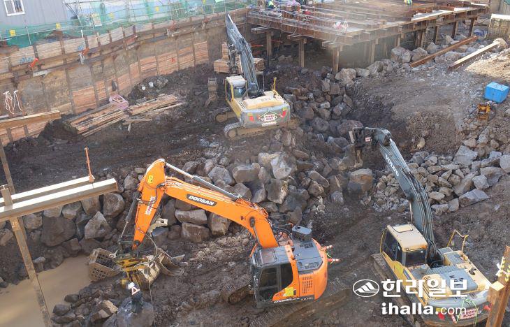 지난 18일 터파기 작업이 진행 중인 제주시 연동의 한 재건축 공사 현장의 모습. 김도영기자