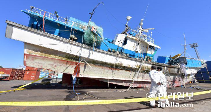 이날 합동 감식에는 제주지방해양경찰청 과학수사계와 국립과학수사연구원, 한국해양교통안전공단(KOMSA) 관계자 등이 참여했다.