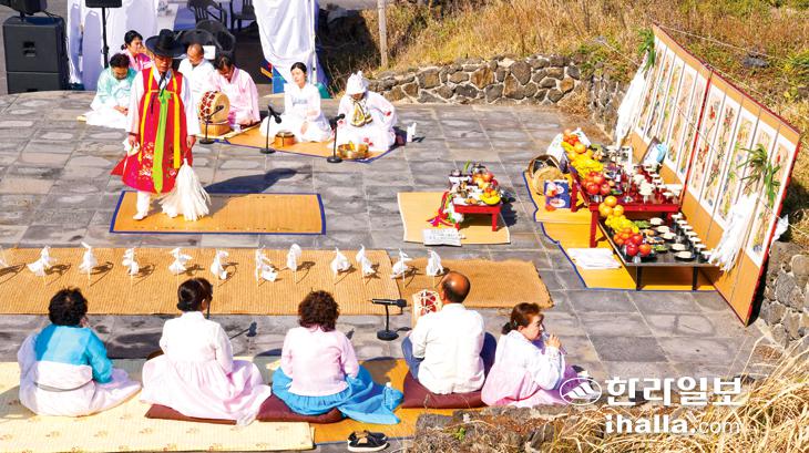 25일 제주시 한림읍 월령리 해변공연장에서 (사)제주칠머리당영등굿보존회가 마련한 '찾아가는 제주4·3위령제-무명천 진아영 할머니 추모위령제'가 열렸다. 강희만기자