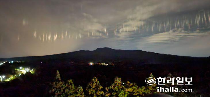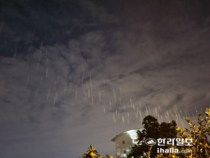 26일 저녁 제주 전역에서 관측된 빛기둥. 난대아열대산림연구소 제공