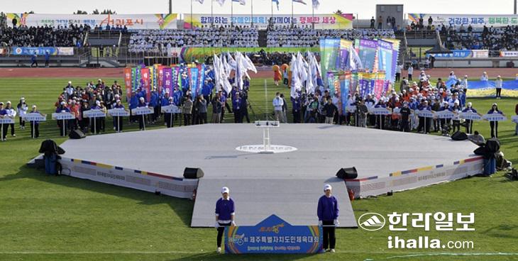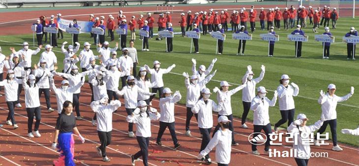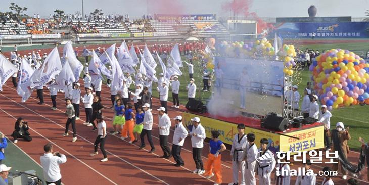 28일 오후 서귀포시 강창학경기장에서 제56회 제주특별자치도민체육대회 개회식이 열리고 있다. 이상국 기자