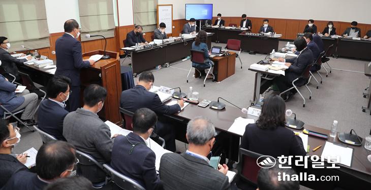 28일 제주도의회 환경도시위원회가 제주시를 상대로 행정사무감사를 진행하고 있다. 사진=제주시