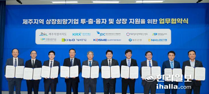 제주특별자치도는 민선8기 제주도정 핵심공약인 상장기업 20개 육성·유치를 위해 31일 오후 2시 제주도청 본관 4층 탐라홀에서 총 10개 기관 업무협약을 맺었다.