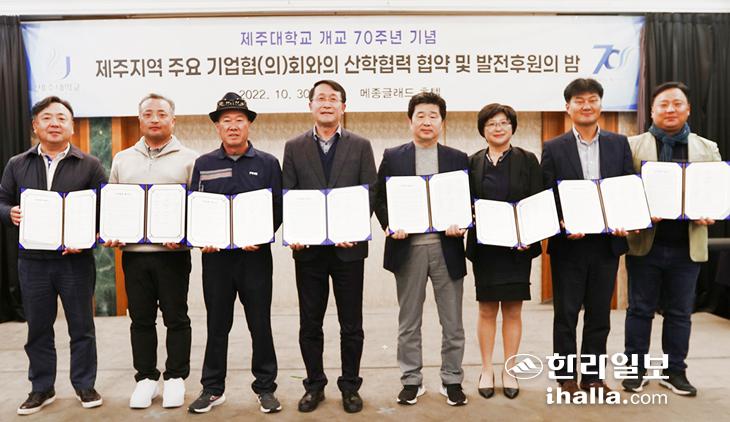제주대학교(총장 김일환)는 지난 30일 제주시 메종글래드 제주에서 개교 70주년을 맞아 제주지역 미래산업분야 주요 7개 기업단체와 산학협력 협약을 체결하고 이들 단체의 기업들과 제주대 발전 후원의 밤 행사를 가졌다.