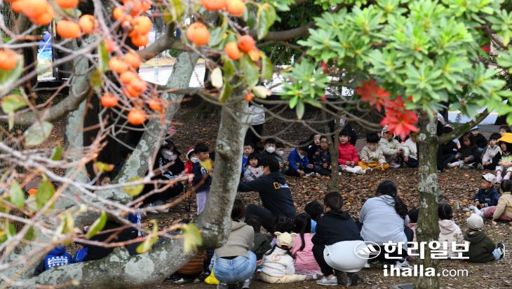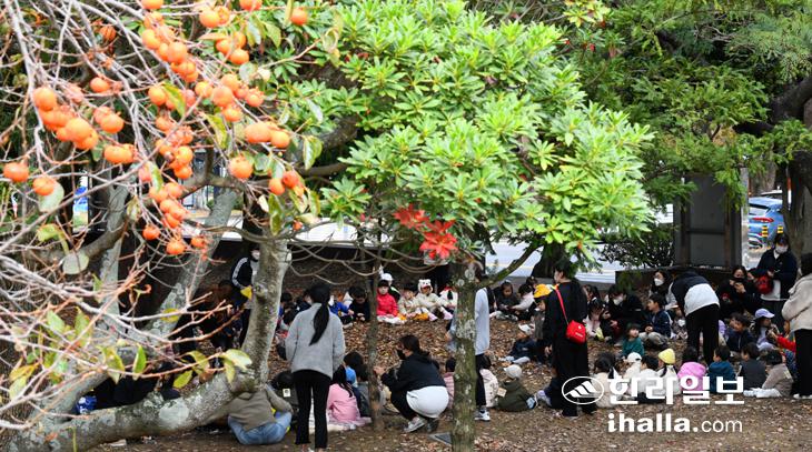31일 제주도청 인근 소공원으로 소풍을 나온 어린이들이 즐거운 시간을 보내고 있다. 이상국기자