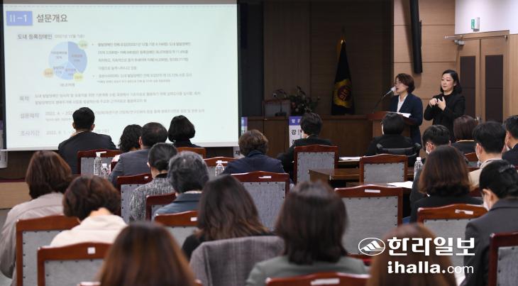 1일 제주도의회 대회의실에서 열린 '2022년 2차 제주사회복지포럼'에선 이 같은 내용을 담은 발달장애인 실태조사 결과가 발표됐다. 포럼은 연구 수행기관인 제주연구원 제주사회복지연구센터가 주최하고 제주특별자치도의회 보건복지안전위원회가 주관했다.