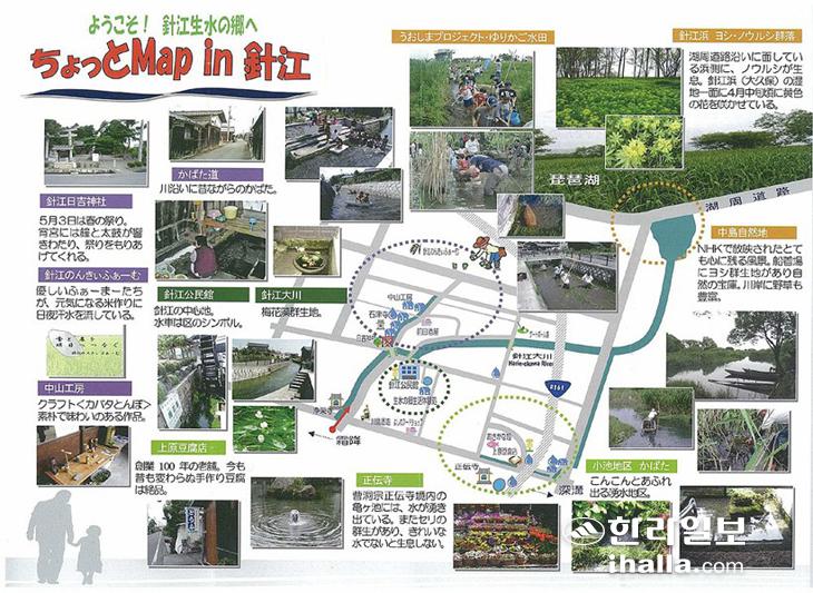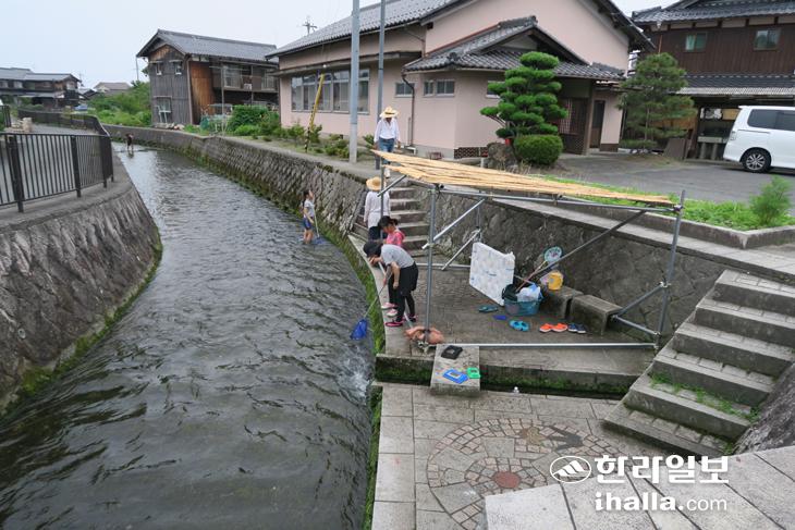 ▶'물의 정원' 하리에 마을=일본 중부 혼슈 시가현 하리에(針江) 마을은 '물의 정원'으로 알려진 곳이다. 하리에 마을은 일본에서 가장 큰 자연호수인 비와호(琵琶湖)의 서쪽에 위치한 100가구 정도의 작은 마을이다. 2004년 일본의 공영방송 NHK에서 방송한 다큐멘터리 '물의 정원'으로 화제를 모았던 마을이 바로 이곳이다.
