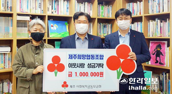 제주희망협동조합(이사장 고진석)은 지난 4일 우리동네지역아동센터(센터장 안명희)를 방문해 이웃사랑 성금 100만원을 제주사회복지공동모금회(회장 강지언)에 기탁했다. 이번 성금은 고진석 이사장이 지역사회 아동·청소년들을 위해 수익금의 일부를 적립한 것으로, 우리동네지역아동센터를 통해 아이들의 복지 인프라 구축에 사용될 예정이다. 고진석 이사장은 "아이들이 즐겁게 생활하면서 꿈을 키워나가는데 조금이나마 보탬이 됐으면 좋겠다"고 말했다.
