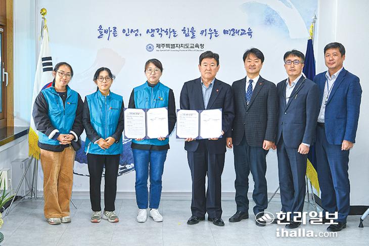 제주도교육청과 전국교직원노동조합제주지부는 7일 김광수 교육감과 문희현 지부장을 비롯한 양측 담당자들이 참석해 교원의 교육 활동 지원을 주요 내용으로 하는 정책협의 합의서 서명식을 개최하고 제주교육 발전을 위한 협력을 다짐했다. 협의 내용은 학급당 학생 수 배치 기준, 교원 업무 경감, 교원 직무 관련 사건 변호사 상담 지원, 교원 복지 관련의 건 등이다.