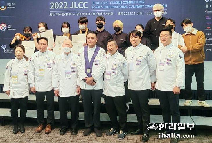 제주관광대학교(총장 김성규)는 학교 관광호텔조리과가 지난 5~6일 개최된 제6회 제주향토음식품평회&WACS 국제요리 경연대회에서 우수한 성적을 거뒀다고 7일 밝혔다. 이번 대회에서 관광호텔조리과에 재학중인 강재현 학생(개인전 파스타 부문)이 실버메달을, 박시온 학생(개인전 쌀요리 부문)과 이소이·정혜연 학생(2인 1조 라이브)이 각각 브론즈 메달을 받았다.