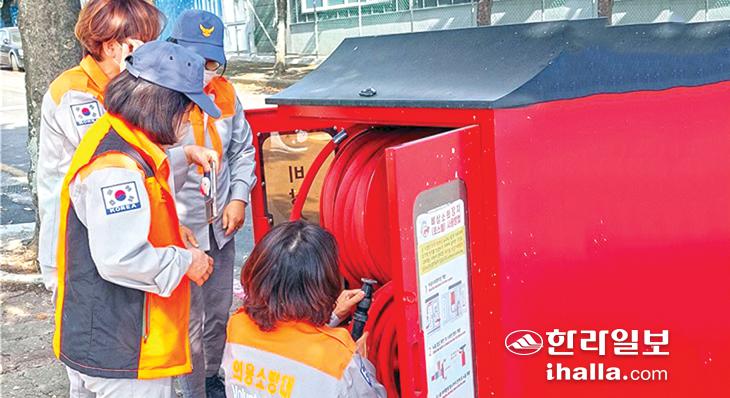 서귀포소방서 효돈의용소방대(남성대장 현은규, 여성대장 김은순)는 지난 7일 관내 원거리 마을에 설치된 호스릴 비상소화장치 점검을 실시했다. 이날 호스릴 비상소화장치 방수상태 확인, 사전 동파방지 조치, 사용 장애요인 제거 등의 점검이 이뤄졌다.