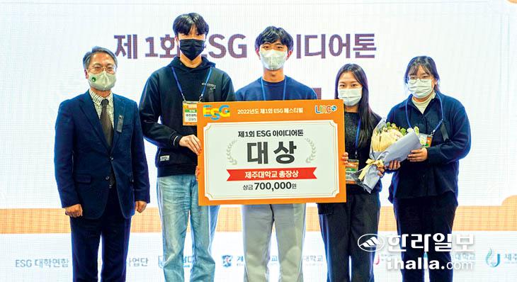 제주대학교 LINC3.0 사업단(단장 강태영)은 최근 수원 컨벤션센터에서 열린 2022 산학협력 EXPO '제1회 ESG(환경·사회·지배구조) 페스티벌 아이디어톤'에서 제주대 '자락자락' 팀(관광경영학과 이은지, 경영학과 임성민, 김대희, 정치외교학과 문희주)이 대상을 수상했다고 10일 밝혔다.