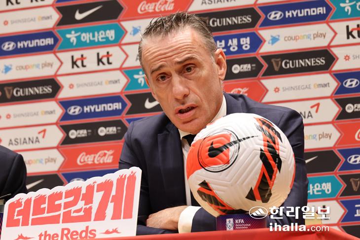 파울루 벤투 축구 국가대표팀 감독이 12일 오후 서울 광화문 교보빌딩에서 2022 카타르 월드컵에 나서는 대표팀 최종 명단을 발표한 뒤 취재진의 질문에 답하고 있다. 연합뉴스