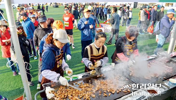 또한 제주감귤의 우수성을 알리기 위한 감귤 시식 코너를 비롯해 대한한돈협회 제주지부의 한돈 소비 촉진 시식 코너, 오메오메의 오메기떡 아이스크림, 제주마미의 호끌락칩스 등 다양한 먹거리를 맛 볼 수 있는 행사도 준비된다. 조천읍부녀회도 이른 아침 대회를 찾는 참가자들의 몸을 녹여주기 위해 따끈한 어묵을 제공할 예정이다. 이밖에도 축제장을 찾은 방문객을 위해 푸짐한 경품 행사도 진행될 예정이다.