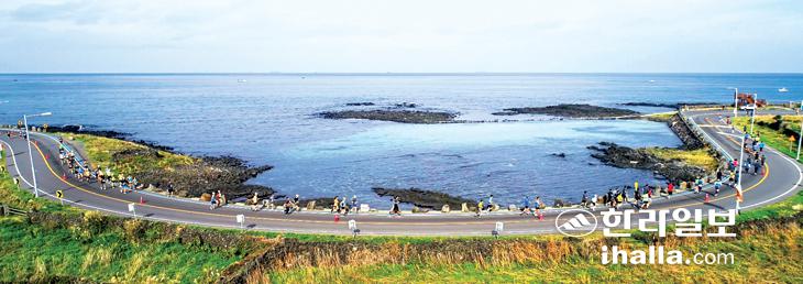 ▶조천에서 김녕, 월정까지=감귤마라톤은 조천에서 김녕, 월정까지 이어지는 해안도로를 따라 달리며 제주의 자연을 느낄 수 있는 코스로 짜여져 있는 것이 특징이다. 이번 대회는 풀코스를 비롯해 하프코스와 10㎞, 5㎞ 코스로 나눠 진행된다. 제주시 조천운동장을 출발해 오션베스트빌(5㎞ 반환점)~함덕해수욕장(10㎞ 반환점)~일주도로 북촌삼거리~구좌읍 일주동로 토끼네BnB(하프 반환점)~동복해안도로~김녕교차로~김녕해수욕장~김녕해안도로~월정밭담길(풀 반환점)을 왕복하는 코스다.