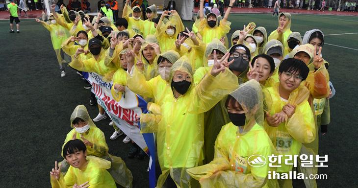 외도초 6학년 학생들과 교직원, 학부모가 감귤마라톤에 출전, 초등학교 마지막 추억만들기에 나섰다.