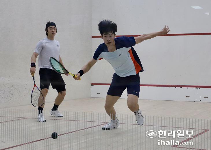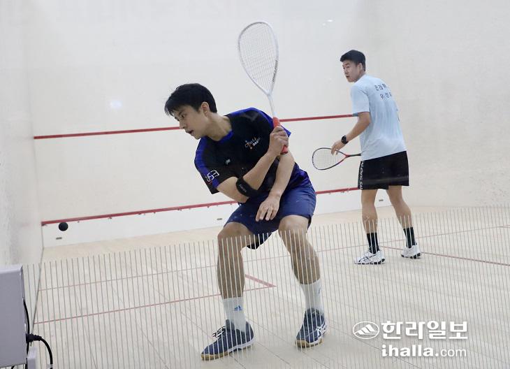 2022 스쿼시 국가대표 선발 1차전에 나선 고영조(왼쪽)와 박종명이 대결하고 있다. 대한스쿼시연맹 제공