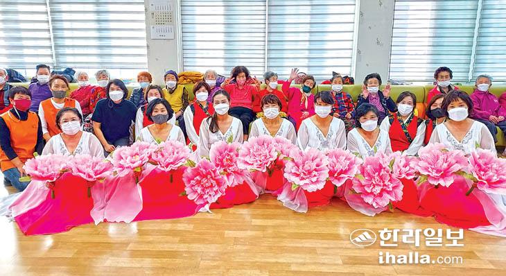 서귀포시 성산읍 신산리부녀회(회장 김숙) 한국무용팀은 지난 26일 회원 10여명이 참여한 가운데 성산원광요양원을 방문해 재능기부 한국무용 공연을 펼쳤다.