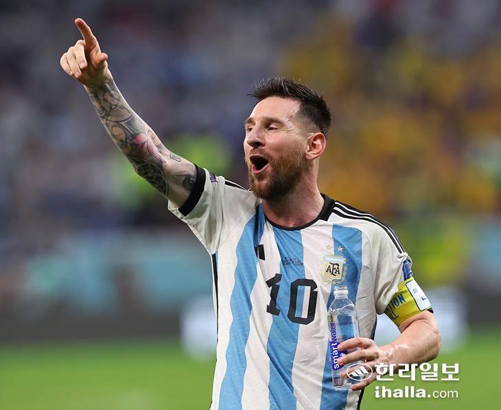 3일 오후(현지시간) 카타르 알라이얀 아흐마드 빈 알리 스타디움에서 열린 2022 카타르 월드컵 16강전 아르헨티나와 호주의 경기에서 2-1로 승리를 거두며 8강 진출에 성공한 아르헨티나 리오넬 메시가 동료들과 기뻐하고 있다. 연합뉴스