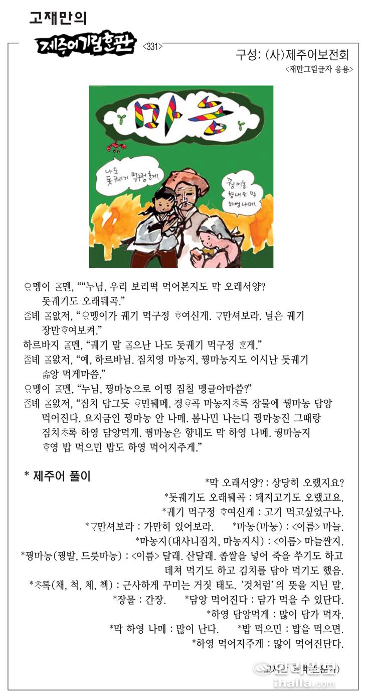 [고재만의 제주어기림혼판] 제주어 풀이(331)