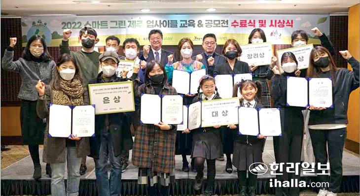 제주특별자치도는 지난 6일 제주시 오션스위츠호텔 캐놀라홀에서 '스마트그린 제주 업사이클 교육&공모전' 수료식과 시상식을 진행했다.