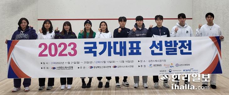 2023 남녀 스쿼시 국가대표. 왼쪽부터 양연수, 송동주, 허민경, 엄화영, 이지현, 오성학, 이민우, 나주영, 유재진, 이동준.