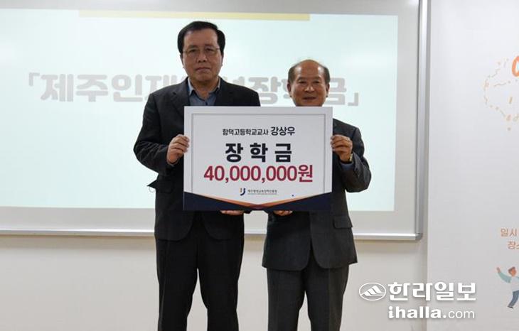 지난 16일 재단법인 제주평생교육장학진흥원에서 강상우 장학금 전달식이 열리고 있다. 제주평생교육장학진흥원 제공