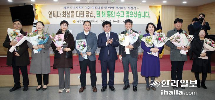 제주도의회(의장 김경학)는 지난달 30일 의원회관 대회의실에서 2022년 의정대상 및 의정발전 유공자에 대한 표창 시상식을 개최했다.