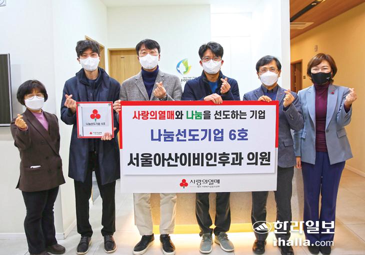 이날 가입식을 통해 서울아산이비인후과는 나눔선도기업 6호로 가입돼 3년간 3000만원의 성금을 도내 어려운 이웃들을 위해 기부할 것을 약속했다.