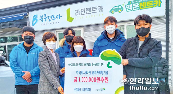제주시 도두동에 있는 라인렌트카(대표 박재구)는 최근 초록우산 어린이재단 제주지역본부(본부장 박정숙)에 희망기금 100만원을 후원했다. 이번 후원금은 도내 소외아동에게 지원될 예정이다.