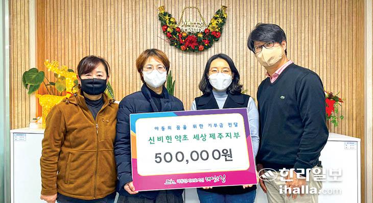 신비한 약초세상 제주지부(지부장 이홍기)는 지난달 31일 아동일시보호시설 해담은 집(원장 김미리)에 후원금 50만원을 기탁했다.