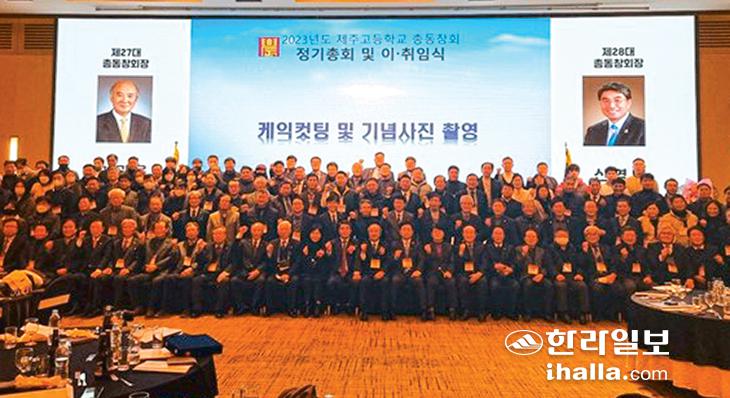 제주고등학교 총동창회(회장 신영민)는 지난 2일 메종 글래드 제주에서 총동창회원 300여 명이 참석한 가운데 2023년도 신년하례회 및 정기총회를 개최했다. 행사는 회무보고, 감사보고, 유공동문표창수여, 2022년 결산 승인 및 2023년도 사업계획 예산안 심의, 회장 이·취임식 순으로 진행됐다.