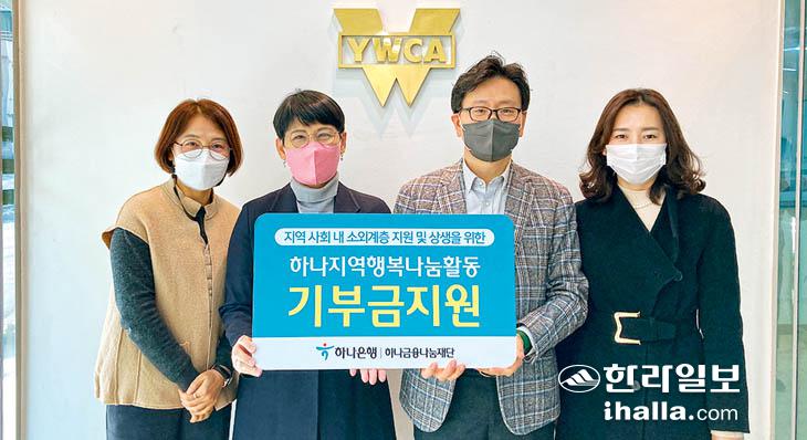 하나금융나눔재단(이사장 김한조)은 최근 사단법인 제주YWCA(회장 고미연)에 청소년 후원금 200만원을 전달했다. 후원금은 지역사회 청소년 소외계층 지원 및 상생을 위해 사단법인 제주YWCA의 지역사회복지 사업에 사용될 예정이다.