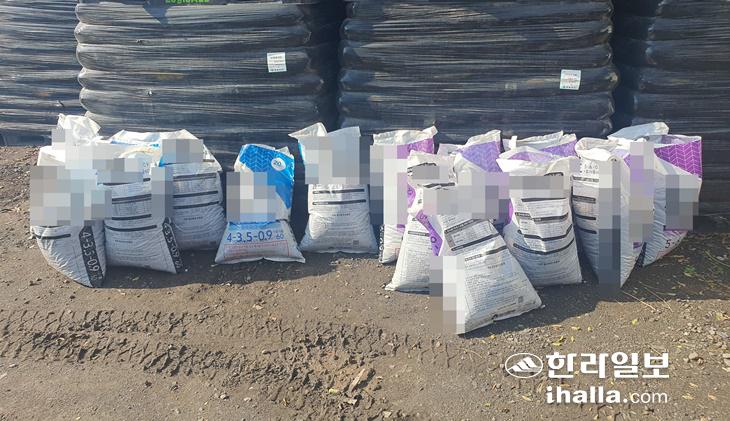 불량 비료를 판매·유통시킨 것으로 드러난 제주시 모 사업장 야적장에 비료들이 보관되어 있다. 제주도 자치경찰단 제공