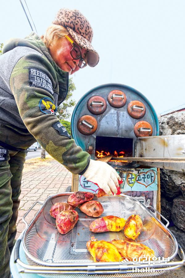 5일 제주시 한림읍에서 한 상인이 겨울철 대표 군것질거리인 군고구마를 팔고있다. 이상국기자