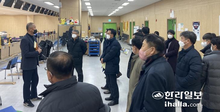 제주도교육청이 김광수 교육감의 '체육 중·고등학교 신설 또는 전환' 공약과 연계해 지난 4~5일 경남북 지역 체육중·고등학교를 찾아 운영 현황 등을 청취하고 있다. 제주도교육청 제공