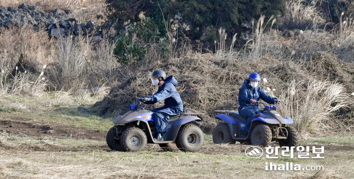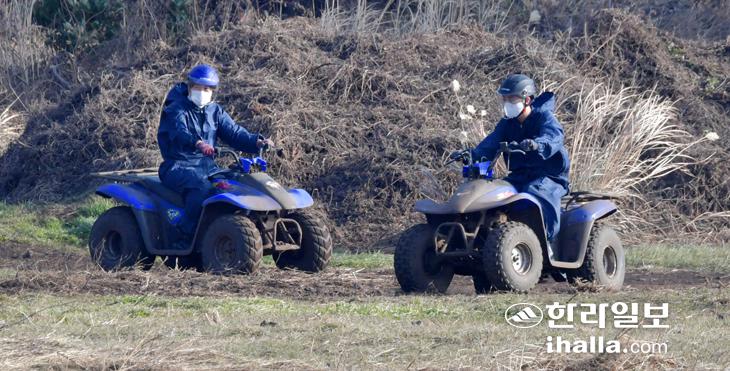 [한라일보] 7일 제주시 한림읍 오프로드 체험장을 찾은 관광객들이 사륜 오토바이를 타고 즐거운 시간을 보내고 있다. 이상국기자