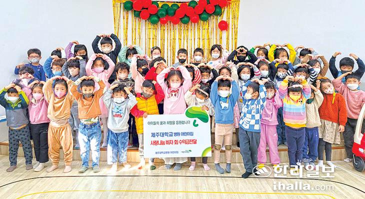 제주대학교병원어린이집(원장 신윤숙)은 지난 6일 어려운 이웃을 돕고자 초록우산어린이재단 제주지역본부(본부장 박정숙)에 사랑나눔바자회 수익금 99만530원을 후원했다.
