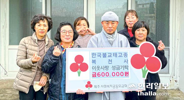 한국불교태고종 복천사는 최근 복천사에서 이웃사랑 성금 60만원을 제주사회복지공동모금회(회장 강지언)에 기탁했다.
