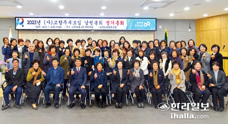남원농협 고향주부모임남원분회(회장 김정희)는 지난 6일 남원농협 본점 회의실에서 회원 50여 명이 참석한 가운데 2022년 결산 승인, 임원 선출, 2023년 사업계획 예산(안) 승인에 따른 정기총회를 개최했다. 이날 신임 회장에는 김경자(태흥2리)씨가 선출됐다.