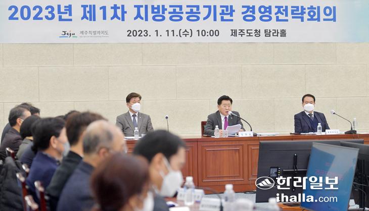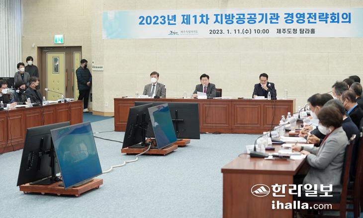 제주특별자치도는 1일 오전 제주도청 본관 4층 탐라홀에서 오영훈 지사 주재로 '2023년도 제1차 지방공공기관 경영전략회의'를 개최했다. 이상국기자