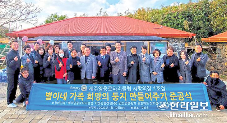 국제로타리 3662지구 제주영웅로타리클럽(회장 강종욱)과 초록우산 어린이재단 제주지역본부(본부장 변정근)는 지난 10일 도내 주거환경 개선이 필요한 가정을 선정해 리모델링을 지원하는 '사랑의 집 1호 프로젝트' 준공식을 가졌다.