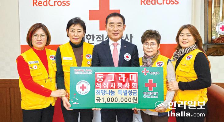 동그라미적십자봉사회(회장 이순자)는 지난 9일 대한적십자사제주특별자치도지사(회장 오홍식)를 방문해 희망나눔 특별성금 100만원을 전달했다.