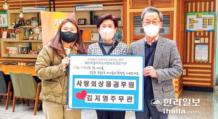 제주도청 소속 김지영 주무관은 지난 9일 제주특별자치도아동보호전문기관(관장 정원철)에 2022년 한 해 동안 모은 상품권(총 71만원)을 전달했다.