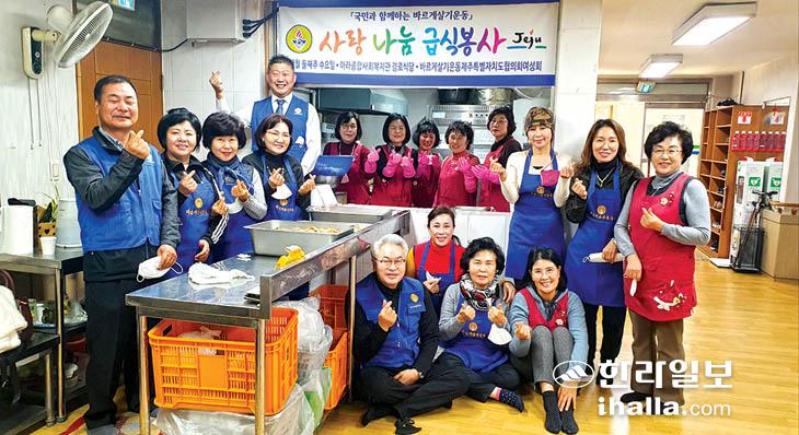 바르게살기운동 제주특별자치도협의회(회장 좌중언)는 여성회(회장 강혜숙)주관으로 지난 11일 아라종합사회복지관에서 지역주민 170여명에게 점심 급식 봉사를 실시했다.