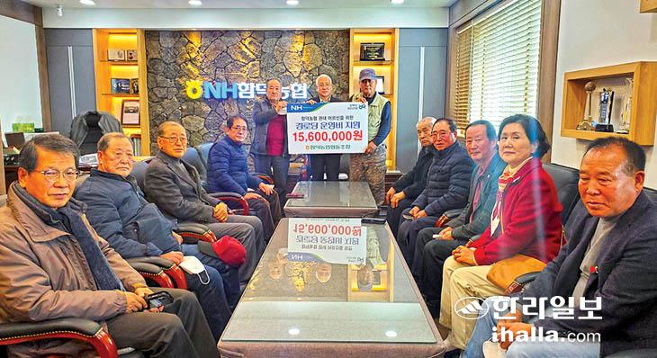 함덕농협(조합장 현승종)은 지난 11일 조합장실에서 12개 마을 경로당 및 노인교실에 지역 어르신을 위한 성금 1560만원을 전달했다.