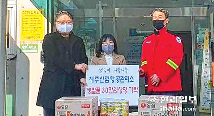 제주산림항공관리소(소장 김태형)는 지난 11일 취약계층에게 전달해 달라며 설맞이 후원으로 라면, 참치 등 30만원 상당의 물품을 아라동주민센터(동장 신금록)에 기탁했다.