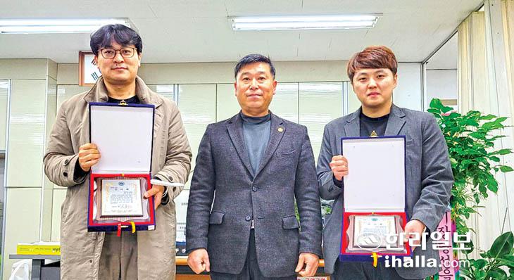 서귀포시 남원읍 신례1리마을회(이장 양수봉)는 12일 리사무소에서 남원읍 강상문 팀장과 강원부 주무관에게 감사패를 전달했다.