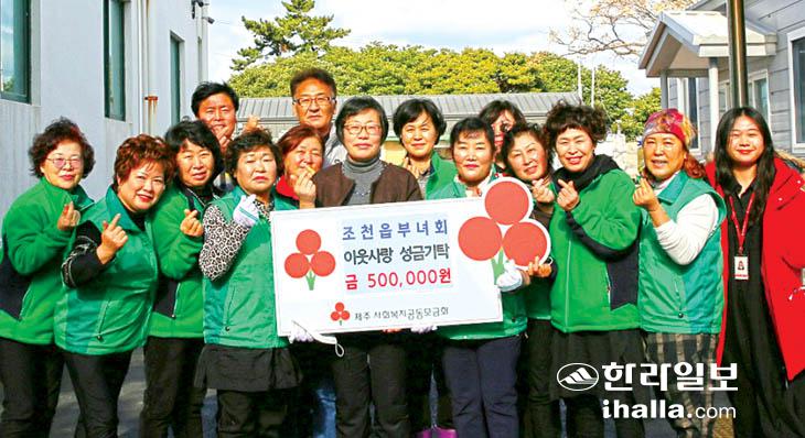 제주시 조천읍새마을부녀회(부녀회장 김상정)는 최근 조천체육관에서 신년행사와 함께 이웃사랑 성금 50만원을 제주사회복지공동모금회(회장 강지언)에 기탁했다. 김상정 부녀회장은 "외롭게 겨울을 보내는 이웃들에게 조금이나마 힘이 됐으면 좋겠다"고 말했다.