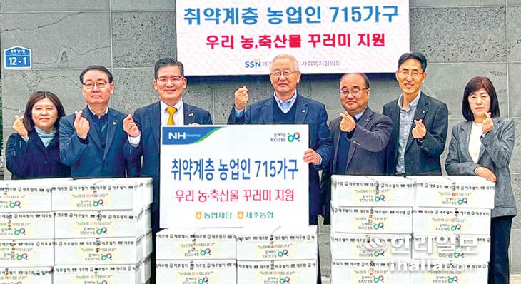 농협중앙회 제주본부(본부장 윤재춘)는 설날을 맞아 12일 취약계층 농업인 715가구에게 농·축산물 꾸러미를 전달했다.